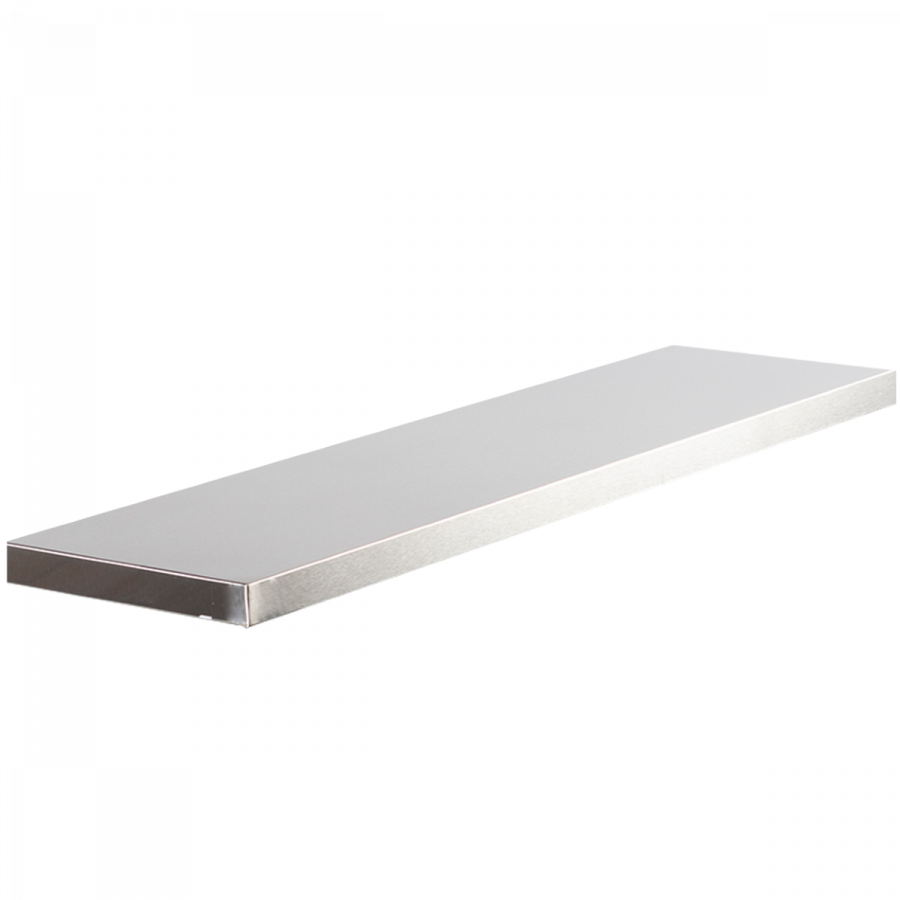 Plateau MDF de 38 mm d'épaisseur recouvert d'une plaque d'inox brossé.